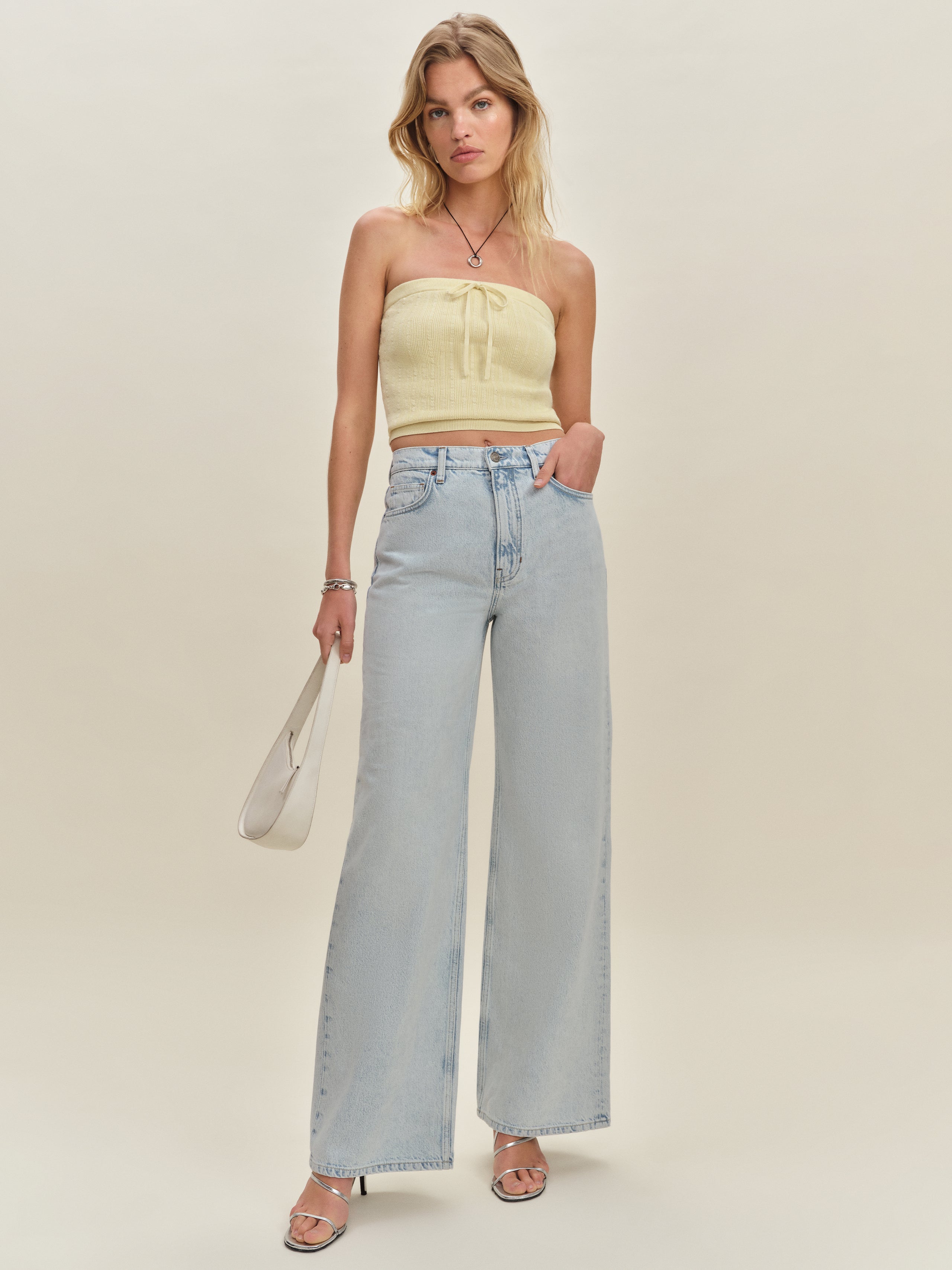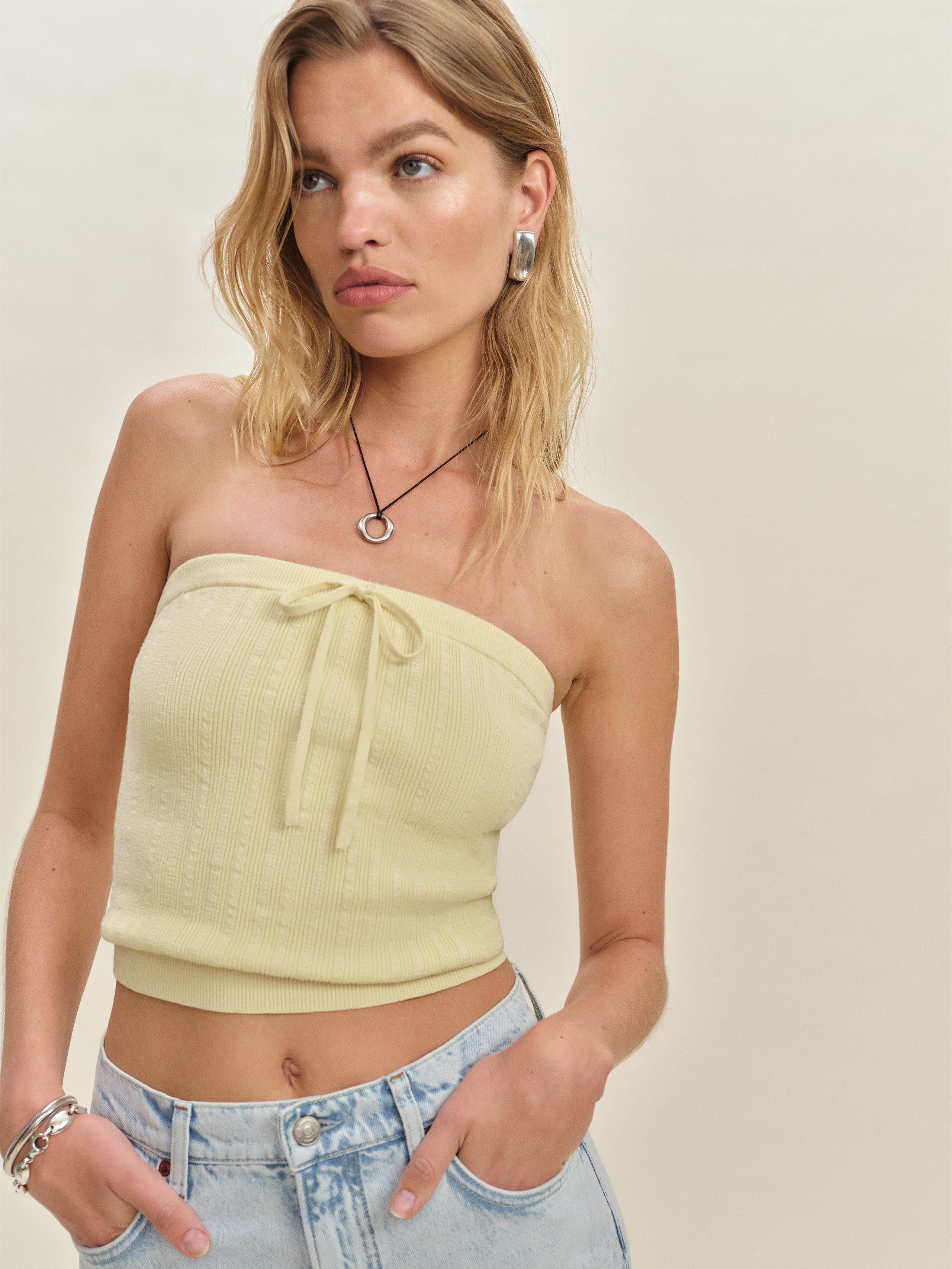 It's getting cold-ish. Shop the Zazie Cotton Strapless Sweater, a sustainable sweater from Reformation.