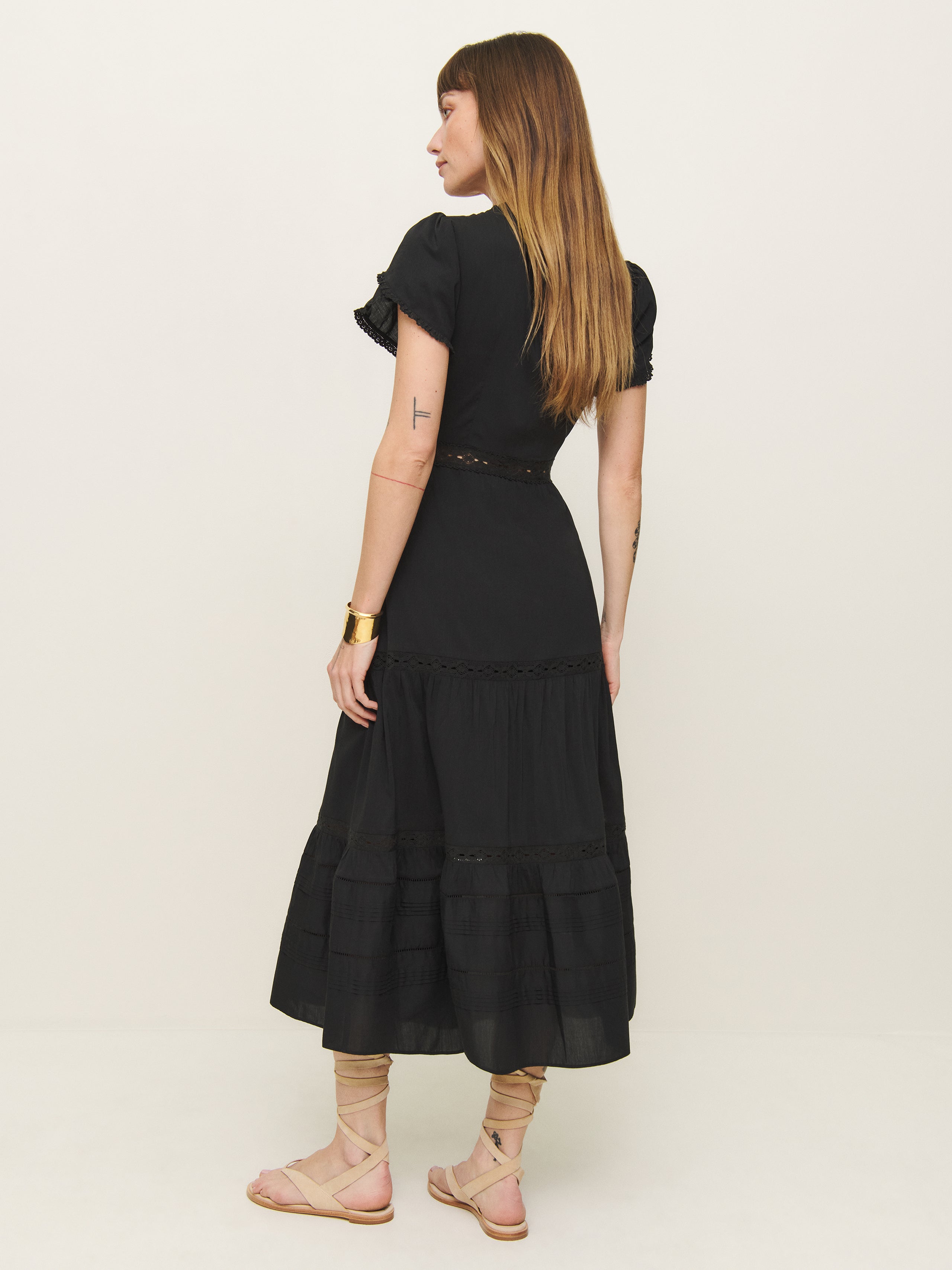 Wear the dress. Shop the Zebrina Dress from Reformation, a short-sleeved midi dress with an adjustable button front and embroidered detailing.